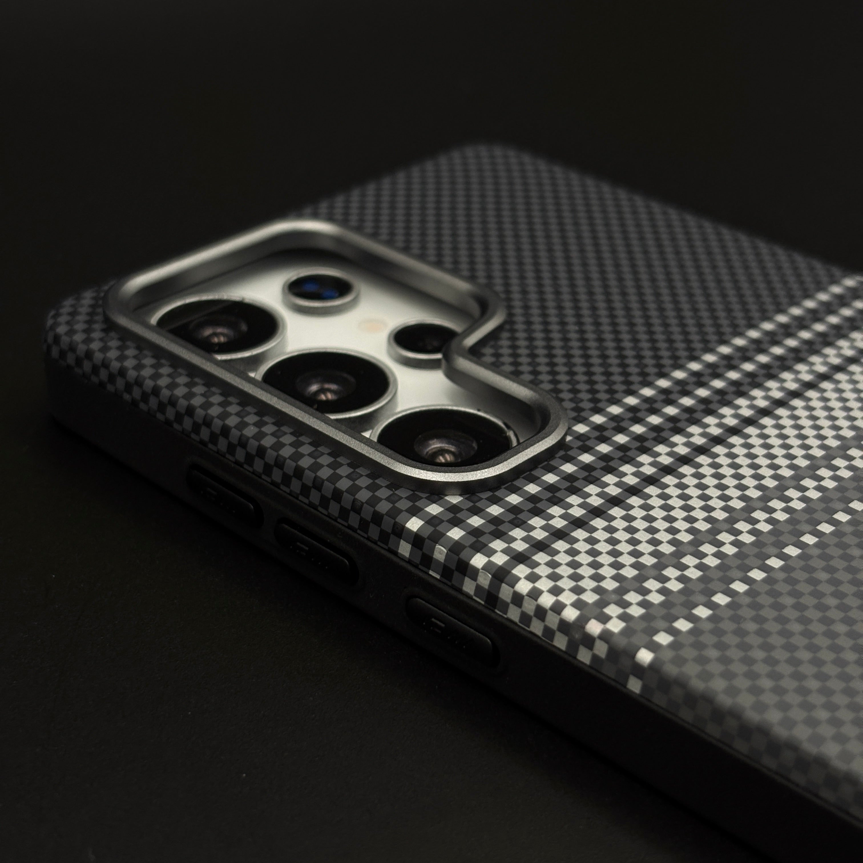 2-in-1 Detachable Magnetic Navy Grey Plaid Case for Samsung Galaxy S25 Ultra | Transparent Shell & Design Plate