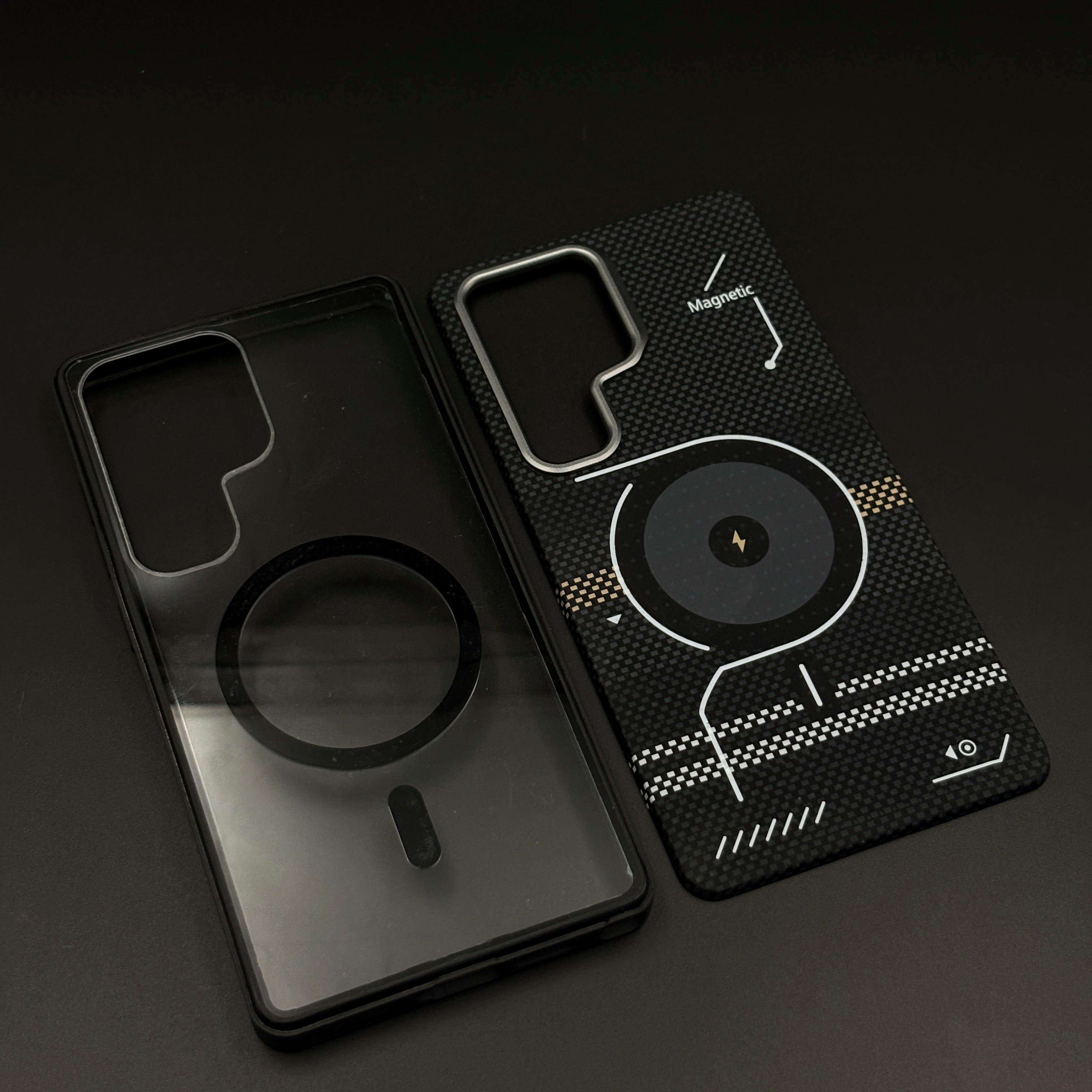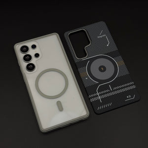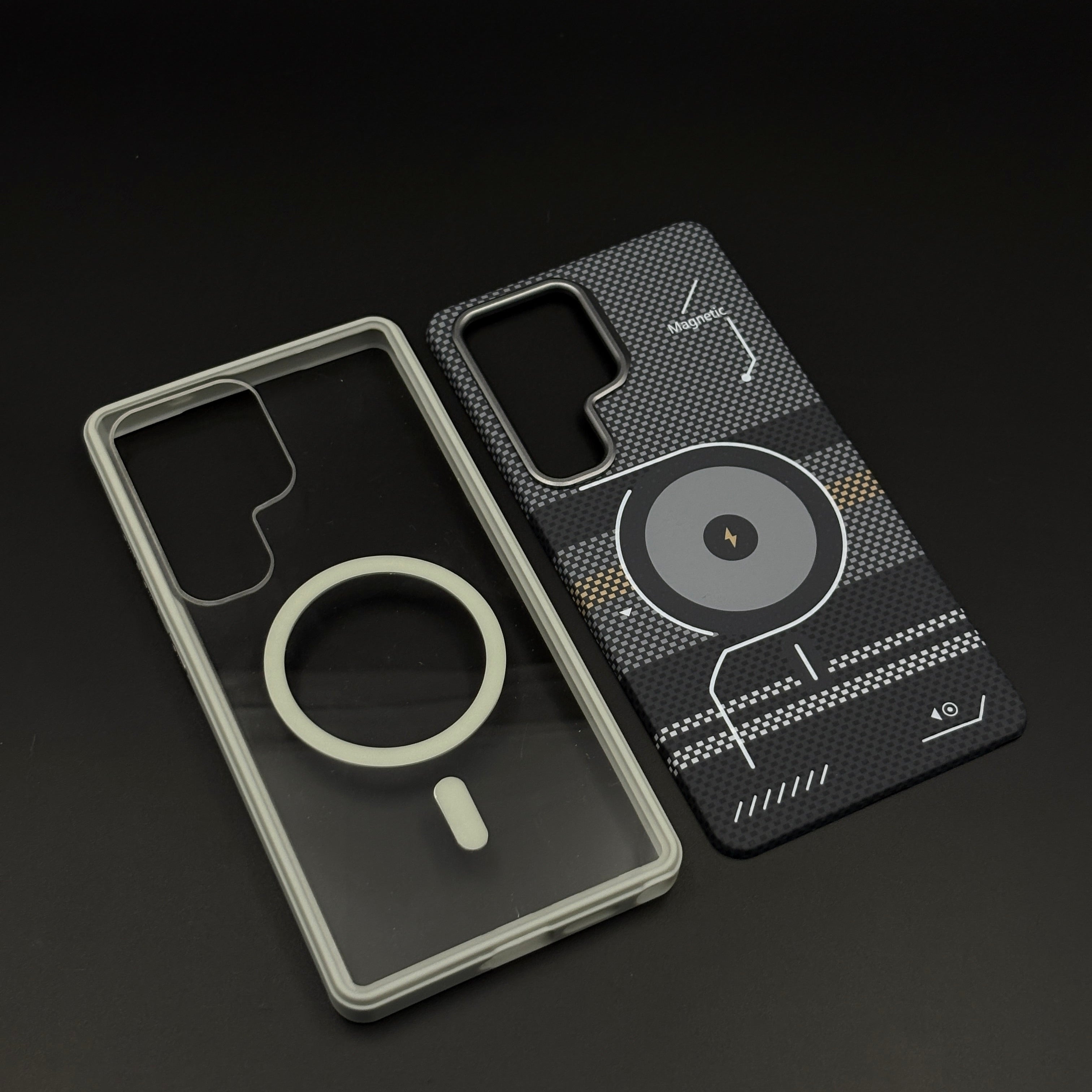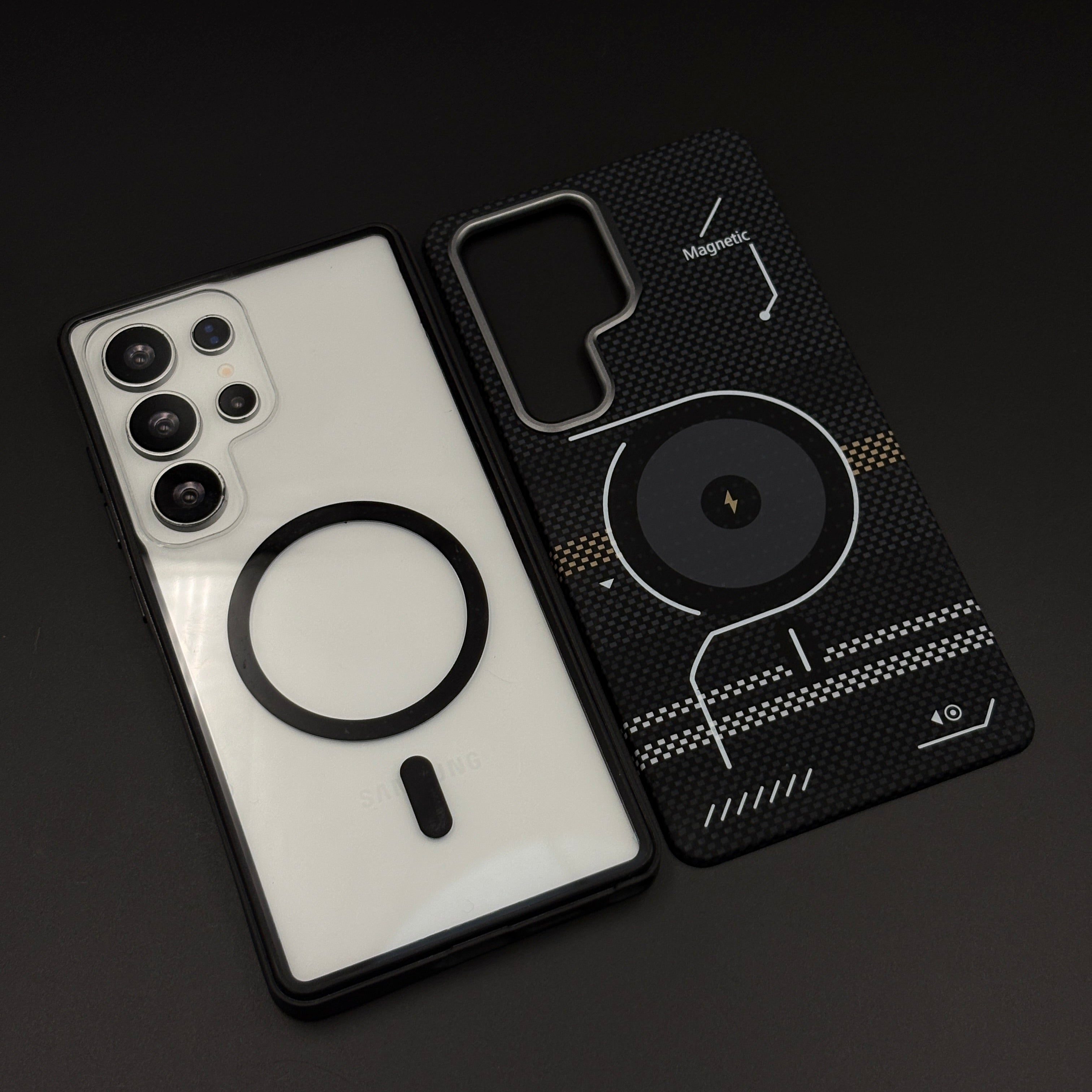 Switch your style and protection with this innovative 2-in-1 detachable magnetic case for Samsung Galaxy S25 Ultra—featuring a transparent MagSafe-ready shell and a magnetic attachable design plate for instant customization and dual-function protection.