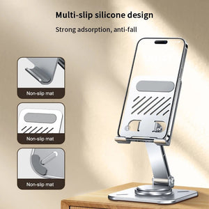 Aluminum Alloy 360° Rotating Adjustable Folding Mobile Phone and Tablet Stand Holder Gray