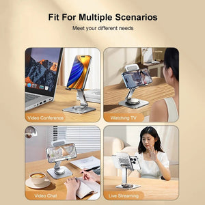 - Multiple Angle Adjustment : The height and angle of this 360 rotation phone stand can be adjusted, this foldable phone stand provides you comfortable view and reduce neck & back strain