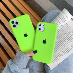 This neon green back cover adapts perfectly to the volume buttons, side button and curves of the phone, and does not bulge anything. This plain rubber case protects your iPhone and on the outside, the special silicone finish is very pleasant to the touch.