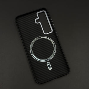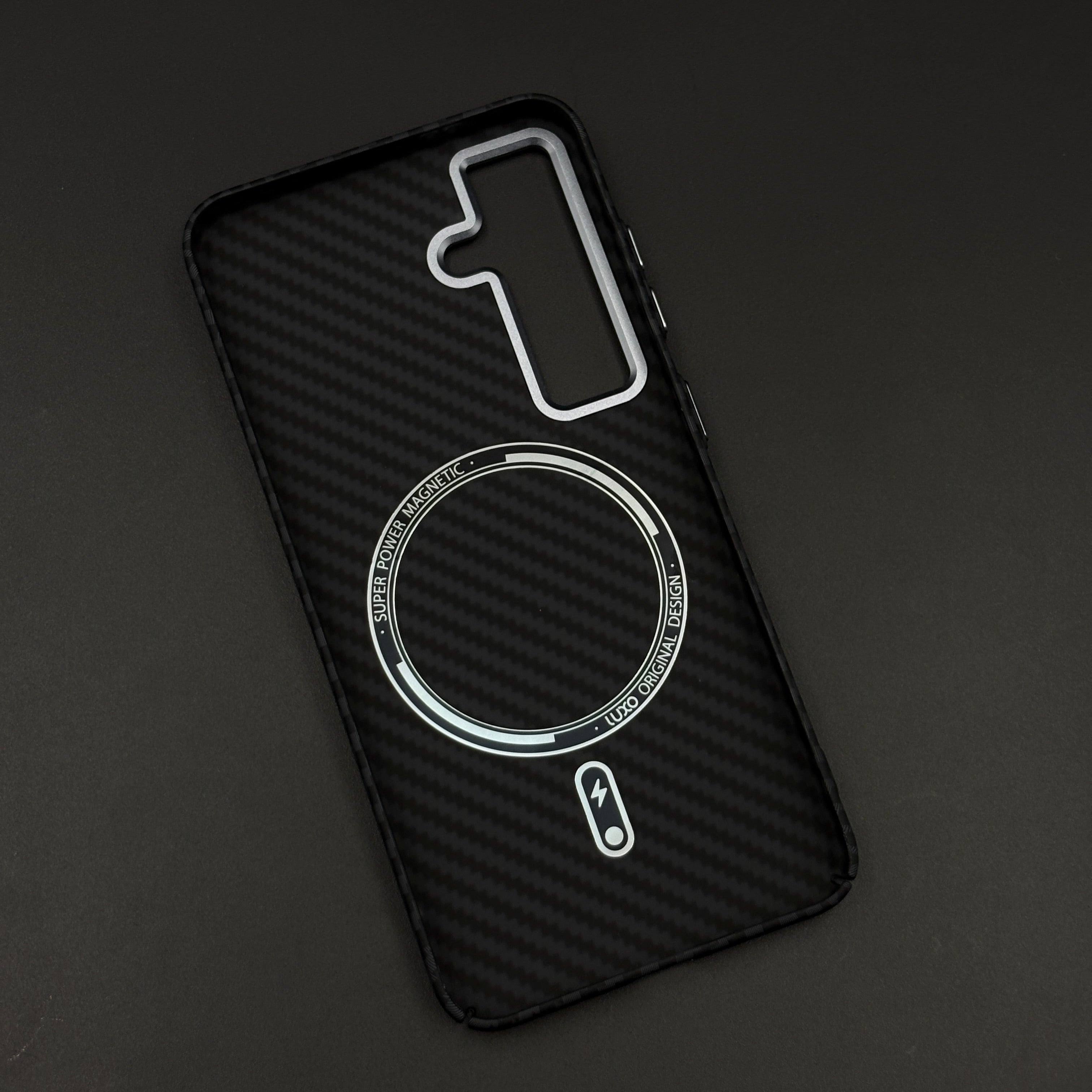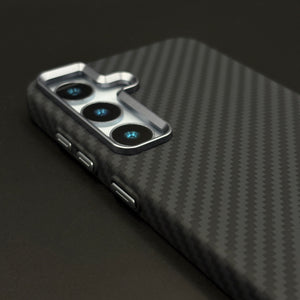 Upgrade your Galaxy S24 FE with this sleek aramid-texture case, combining the luxurious look of carbon fibre with the practicality of MagSafe compatibility. Designed for those who value both performance and precision style.