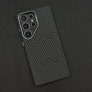 Upgrade your Galaxy S25 Ultra with this sleek aramid-texture case, combining the luxurious look of carbon fibre with the practicality of MagSafe compatibility. Designed for those who value both performance and precision style.