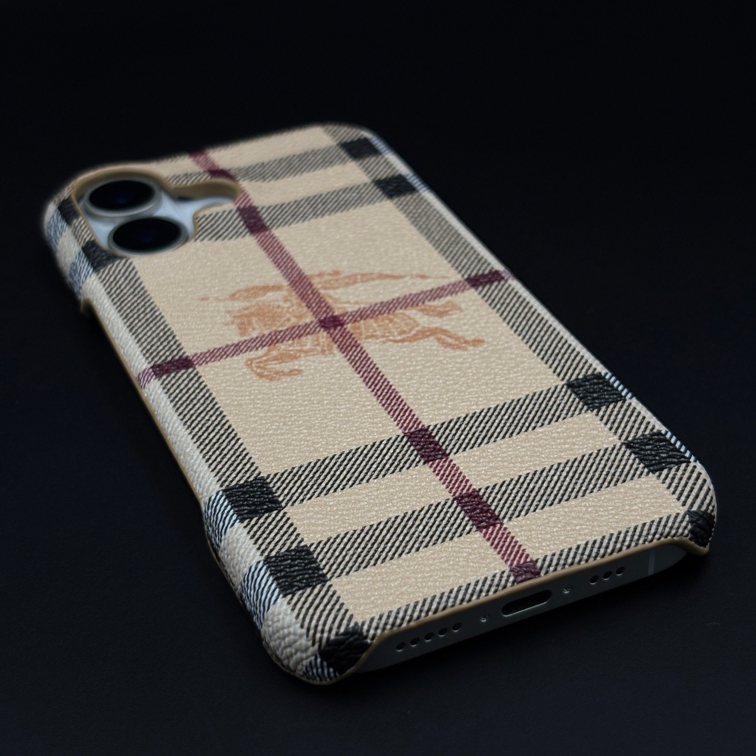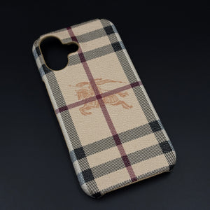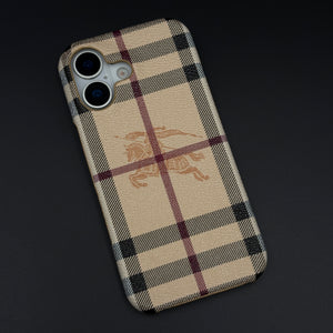 BBRY Branded Fine Leather Mobile Case Cover for iPhone 17 | Classic British Style Check Leather