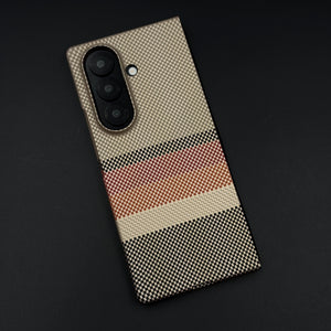 Beige Multi-Stripe Aramid Case with Hidden MagSafe for Samsung Galaxy Z Fold 6 | Camera Kickstand | Carbon Fibre Feel