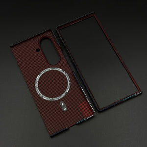 Blue Block Aramid Case with Hidden MagSafe for Samsung Galaxy Z Fold 6 | Camera Kickstand | Carbon Fibre Feel