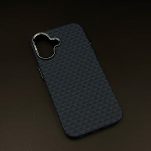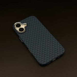 Blue Geometric Slim Mobile Case Cover for iPhone 17 | Rare Aramid Texture Finish | Real Carbon Fibre Feel | Hidden MagSafe