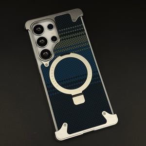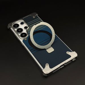 Blue Kevlar Metal Frame Case for Samsung Galaxy S25 Ultra | MagSafe Compatible with Phone Stand | Rugged Style Protection