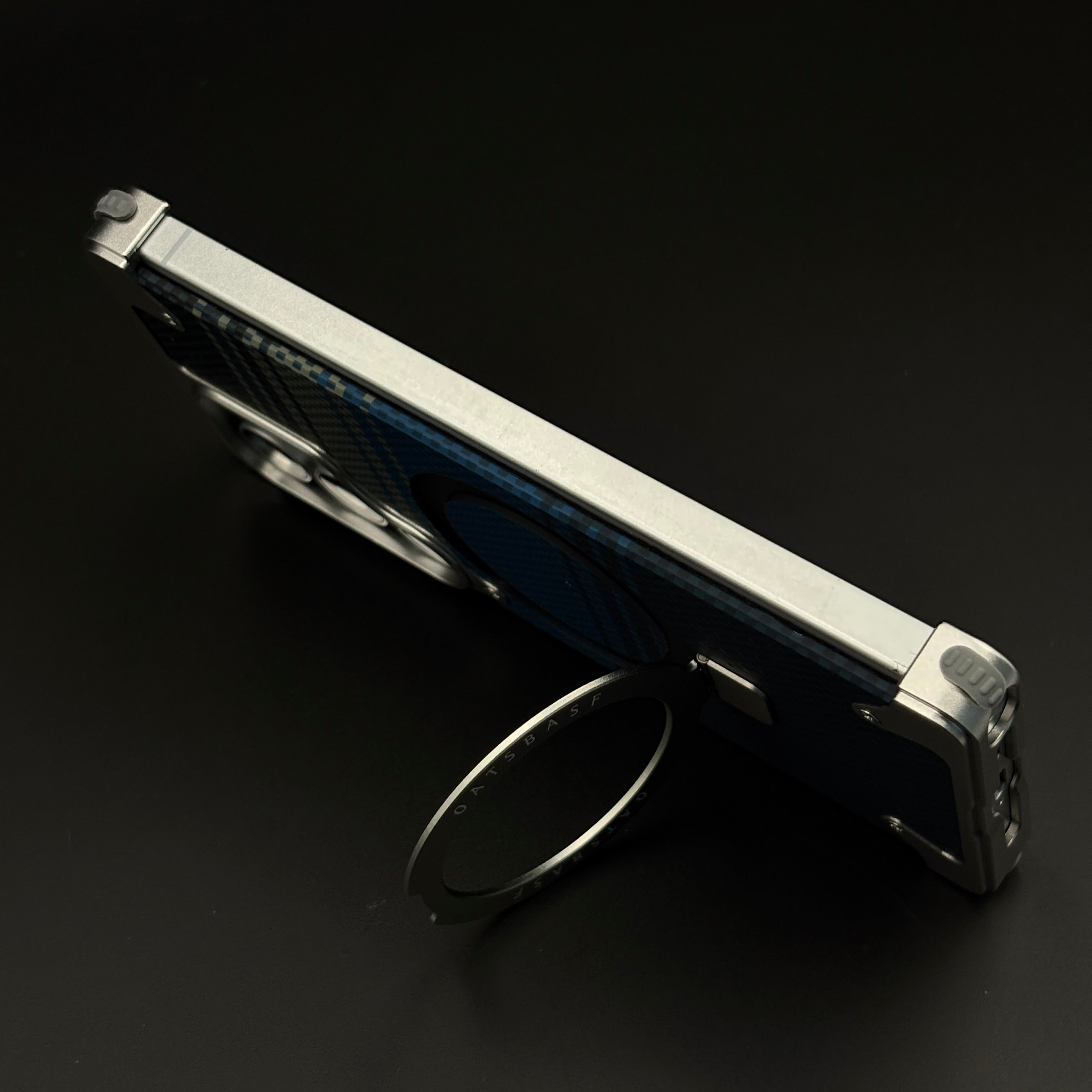 Give your Samsung Galaxy S25 Ultra the ultimate makeover with this bold, rugged, and ultra-functional Kevlar pattern metal frame case. Designed for protection, performance, and premium aesthetics, this case features a built-in magnetic ring stand that doubles as a kickstand and grip loop—perfect for style on the move.