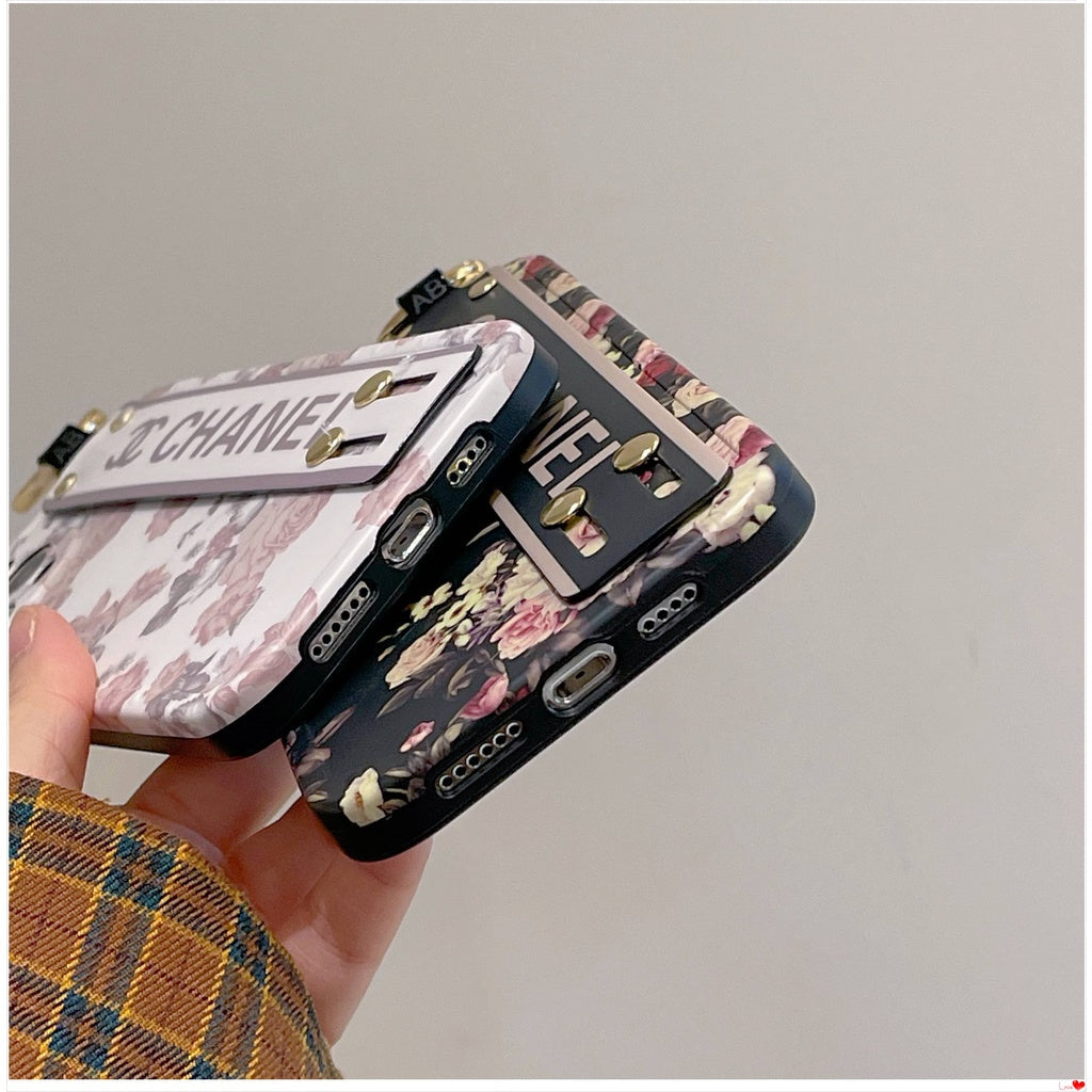 iPhone Luxury Brand CC Floral Strap Belt Case Cover