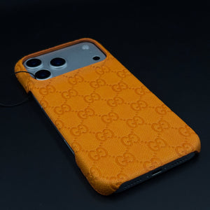 Branded Orange Leather GG Mobile Case for iPhone 17 Series | Designer-inspired Leather Finish