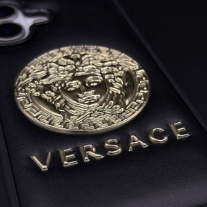 Branded VS Signature Gold Motif Mobile Case for iPhone 17 | Premium Black Cushion with Embossed Logo