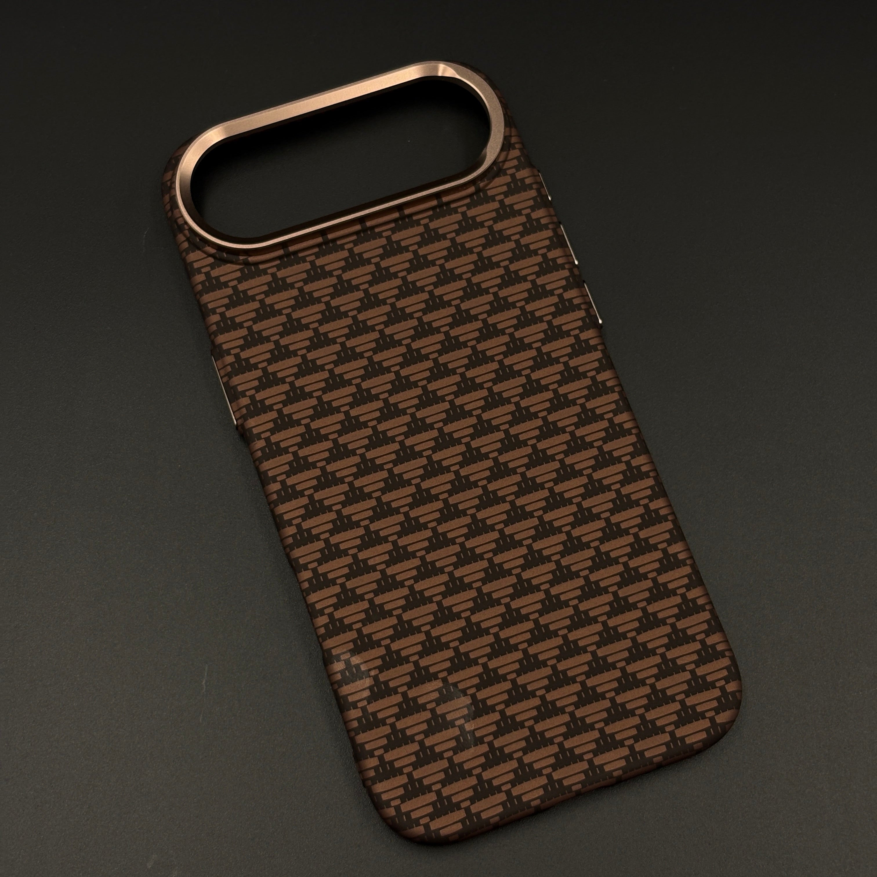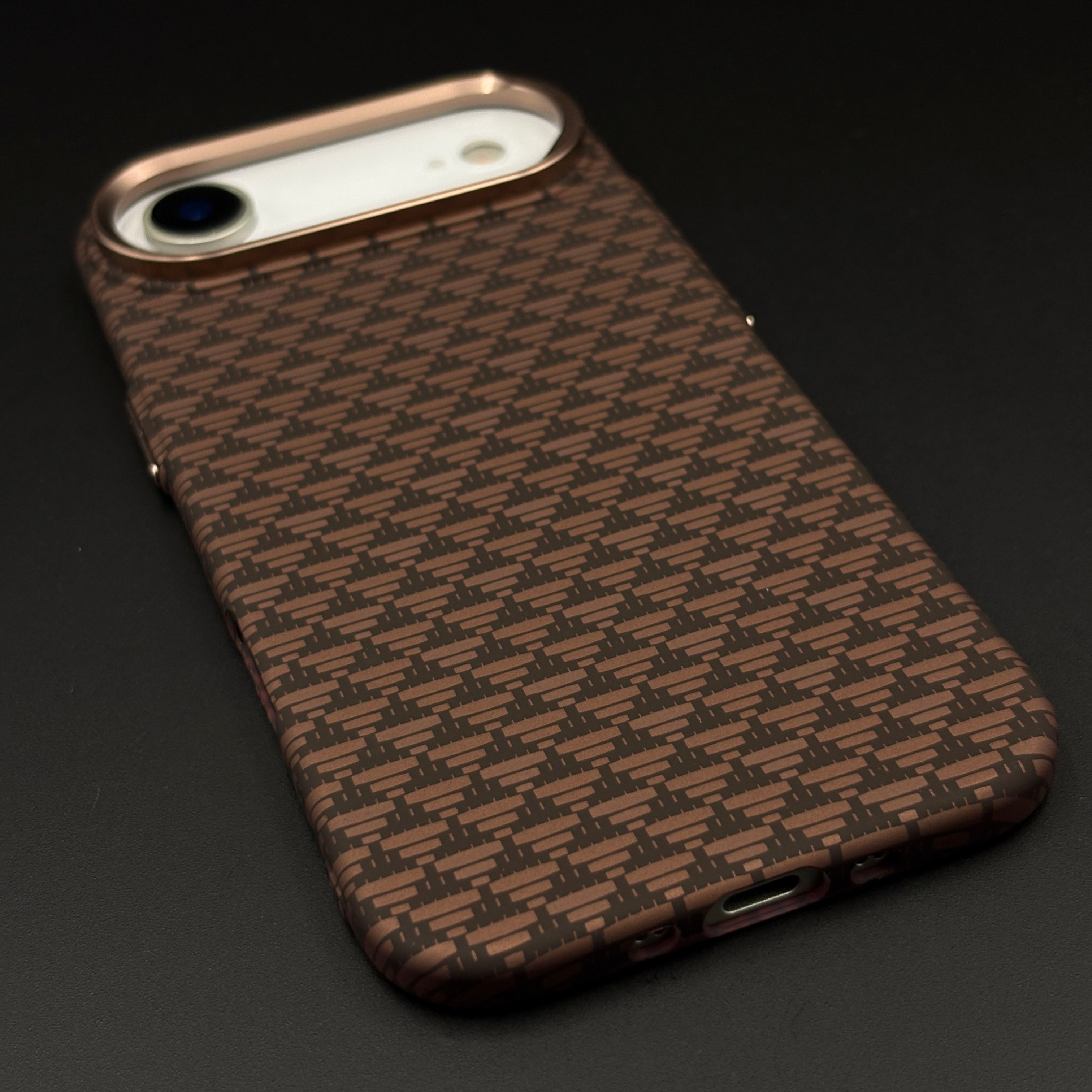 Brown Geometric Slim Mobile Case Cover for iPhone 17 Air | Rare Aramid Texture Finish | Real Carbon Fibre Feel | Hidden MagSafe