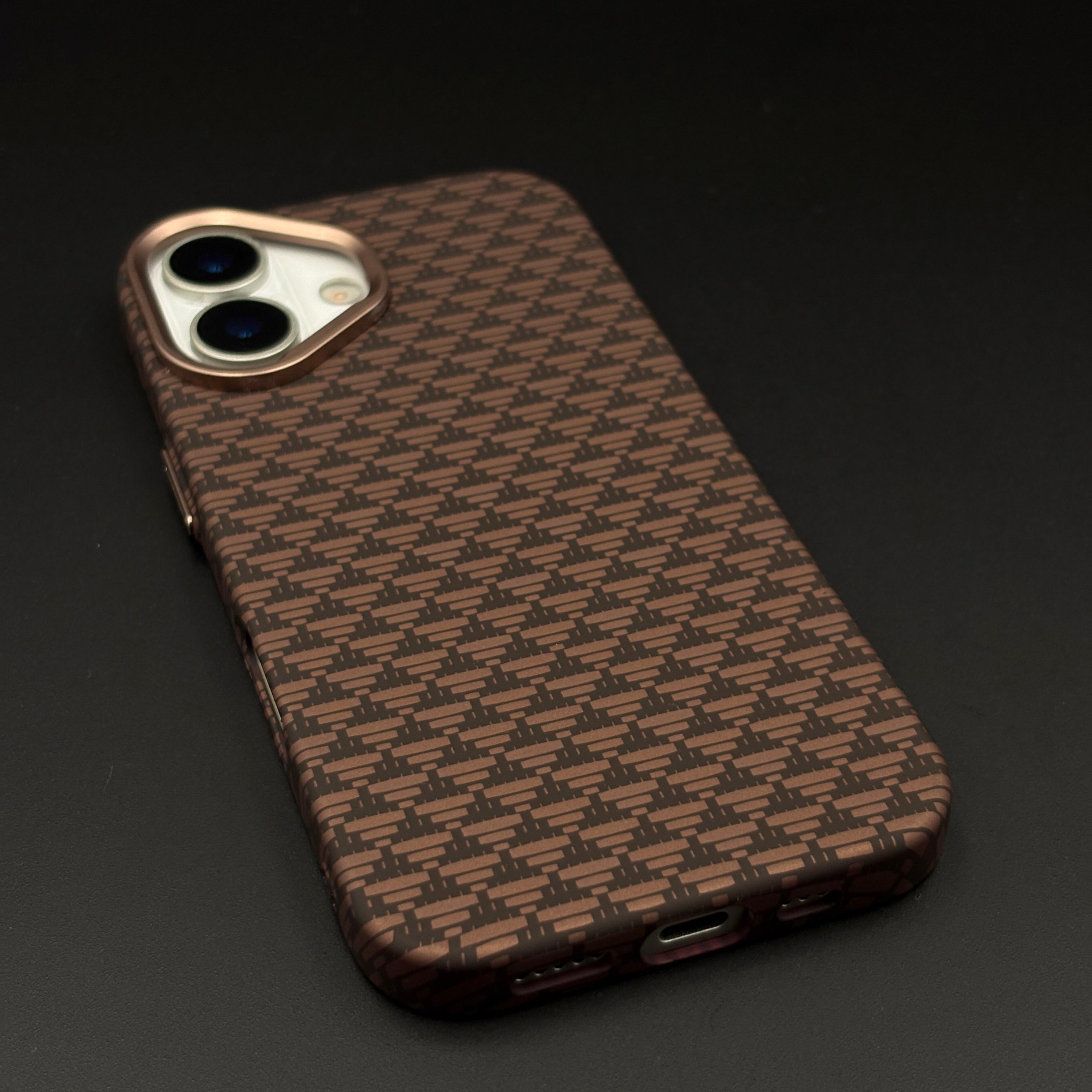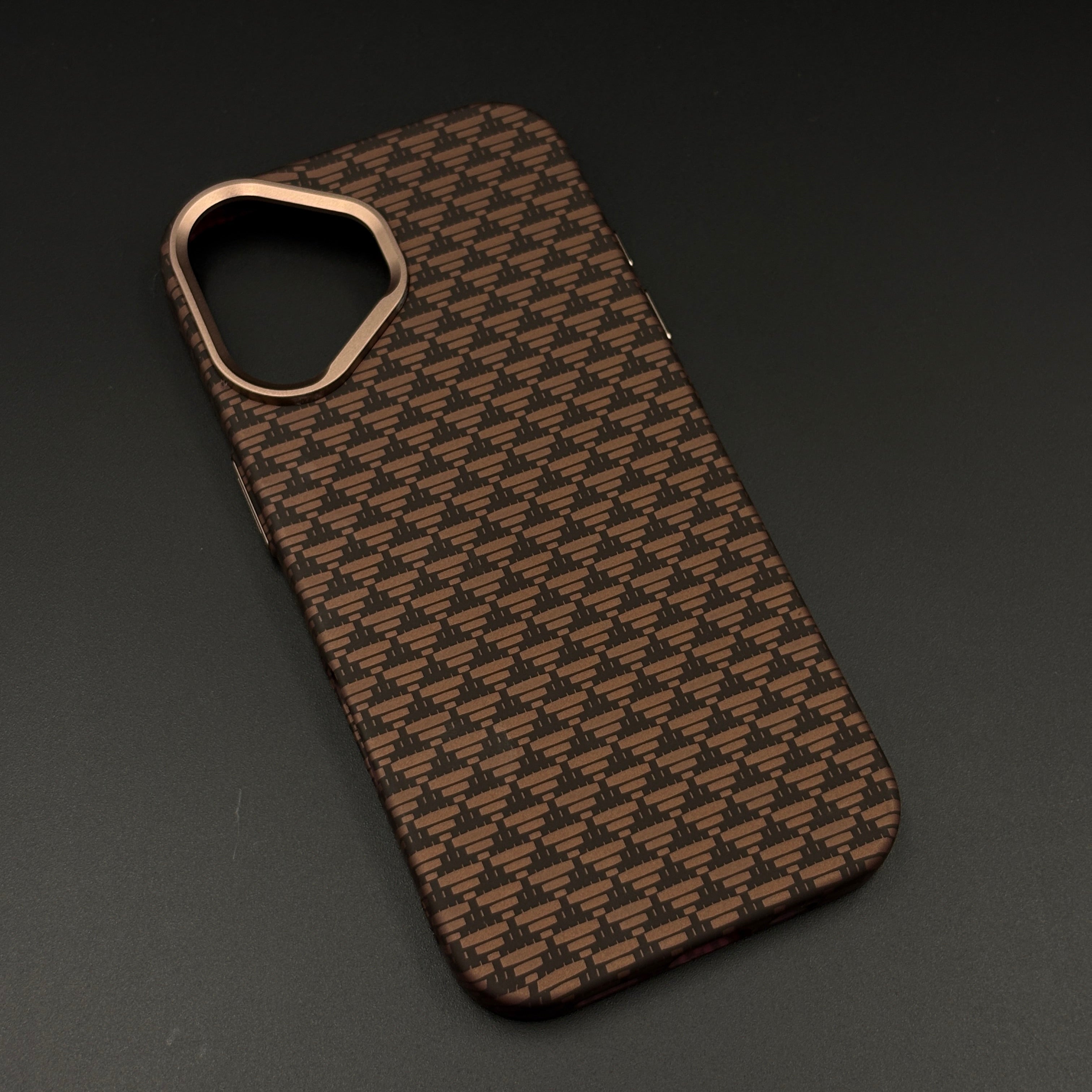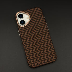 Brown Geometric Slim Mobile Case Cover for iPhone 17 | Rare Aramid Texture Finish | Real Carbon Fibre Feel | Hidden MagSafe
