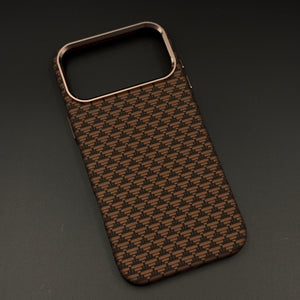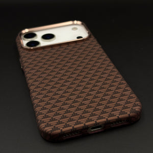 Brown Geometric Slim Mobile Case Cover for iPhone 17 Series | Rare Aramid Texture Finish | Real Carbon Fibre Feel | Hidden MagSafe