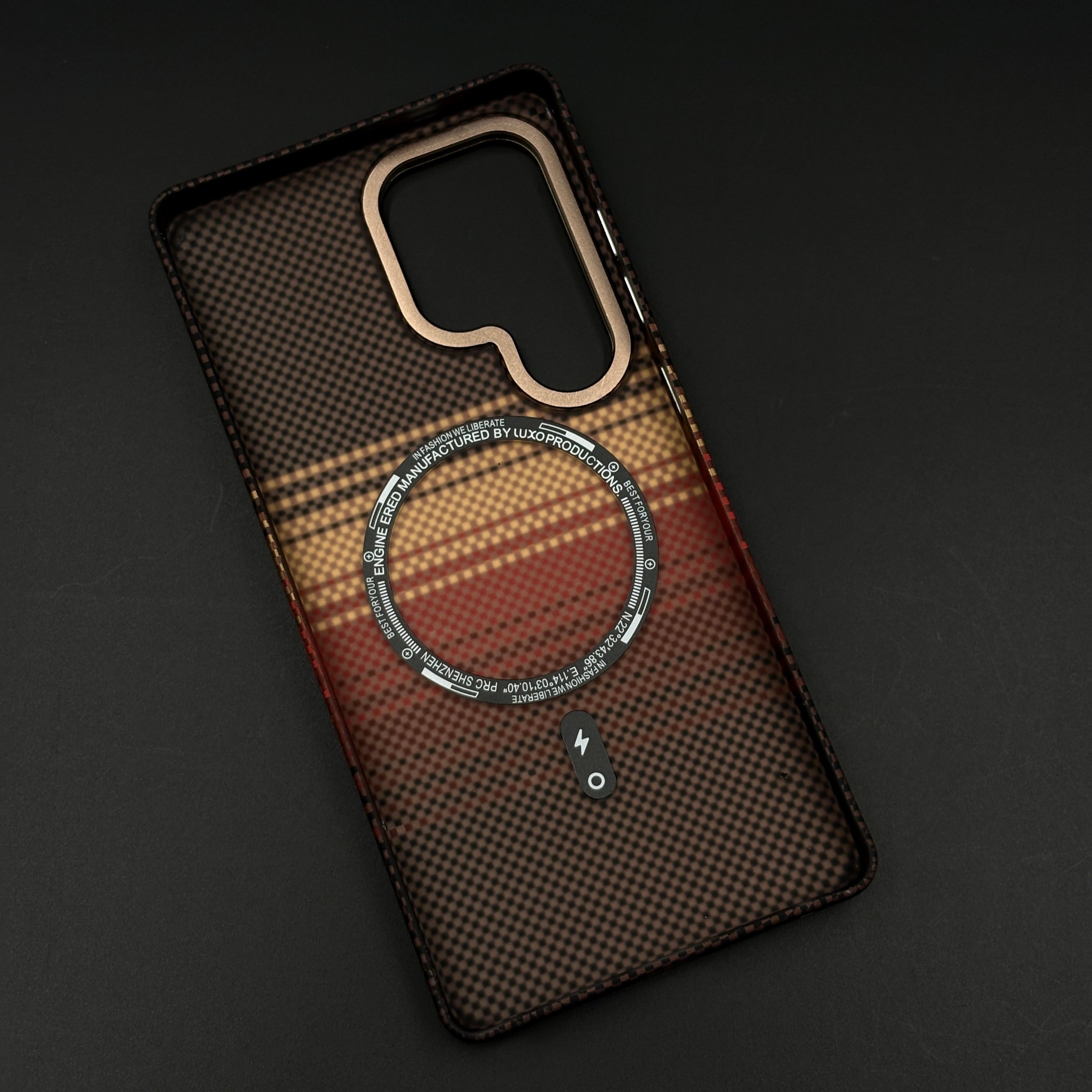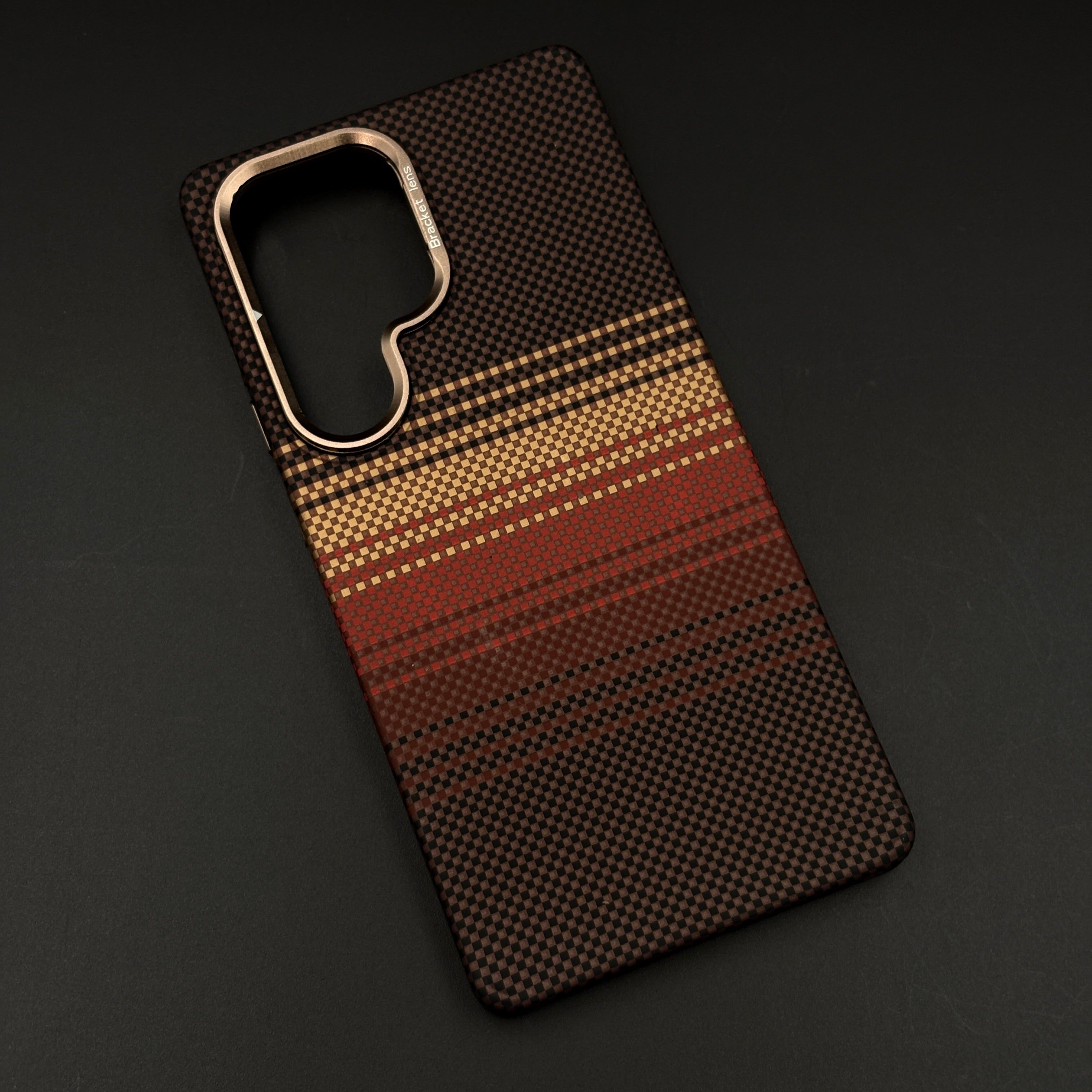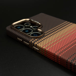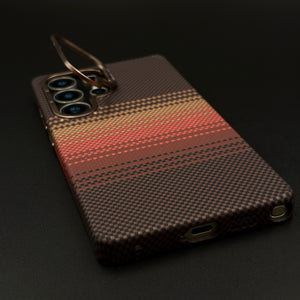 Brown Gradient Stripe Aramid Case for Samsung Galaxy S23 Ultra with Hidden MagSafe | Camera Kickstand | Carbon Fibre Feel