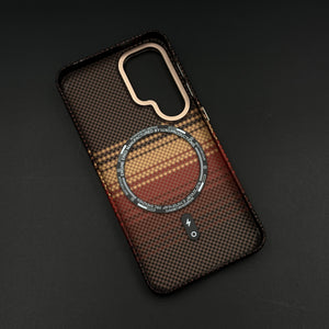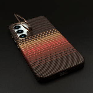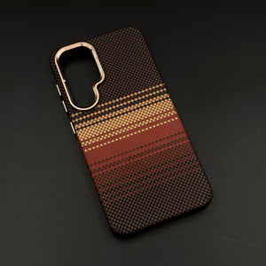 Brown Gradient Stripe Aramid Case for Samsung Galaxy S25 with Hidden MagSafe | Camera Kickstand | Carbon Fibre Feel
