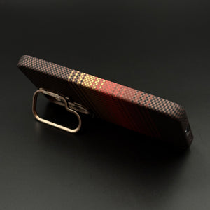 Enhance your Samsung Galaxy S25 with this Brown Gradient Stripe Aramid Case, offering a sophisticated blend of warm brown, gold, and red stripes over a carbon fibre-inspired texture. Featuring a built-in camera kickstand and hidden MagSafe compatibility, this slim case delivers style, utility, and superior protection for daily use.