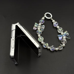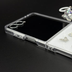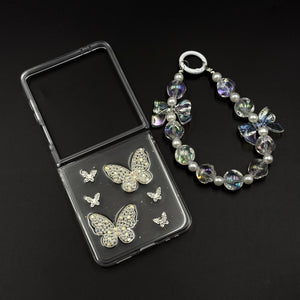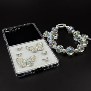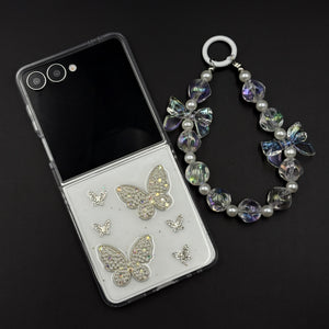 Butterfly Case with Rhinestone Crystals & Beaded Charm Strap for Samsung Galaxy Z Flip 7 | Luxury Transparent Cover