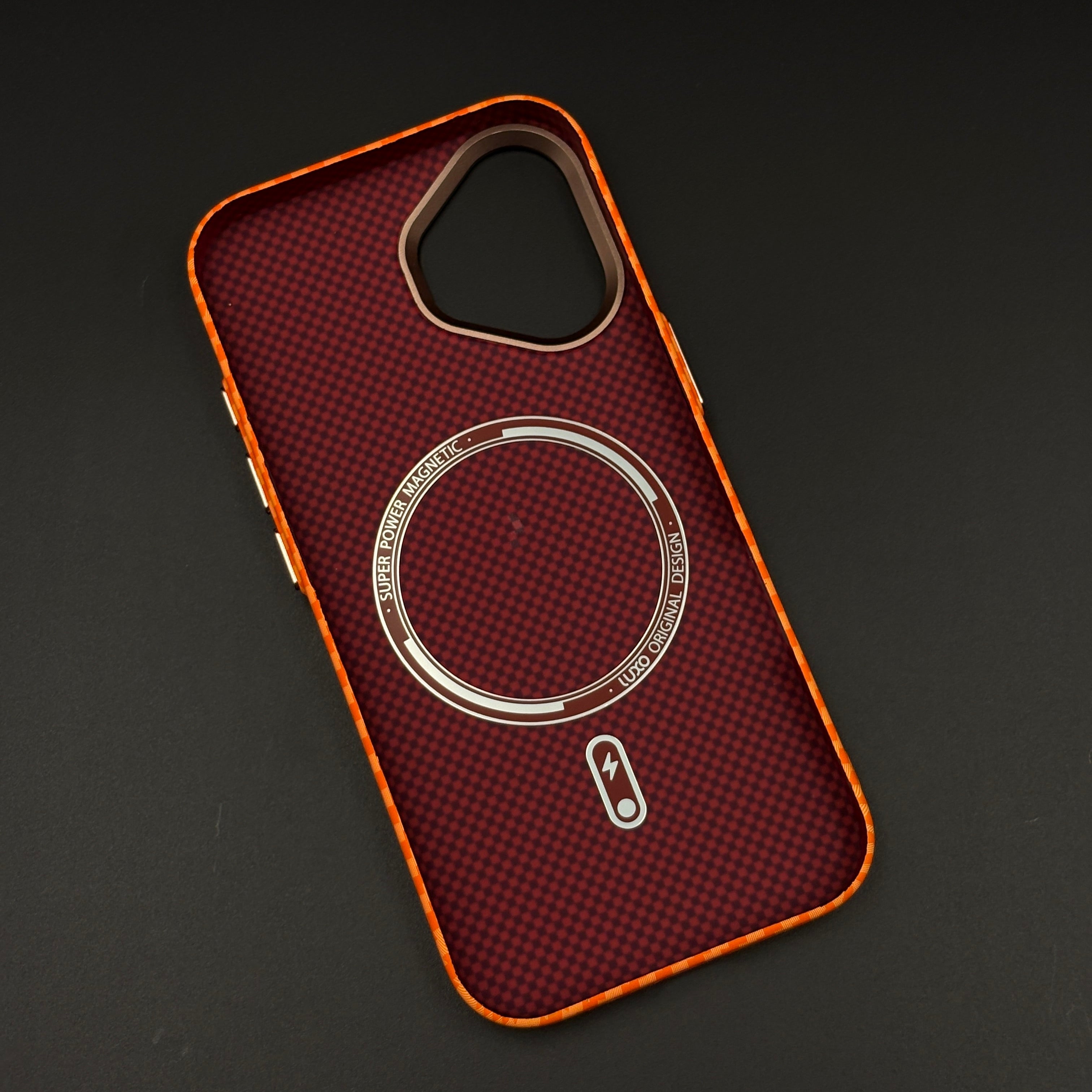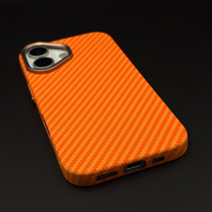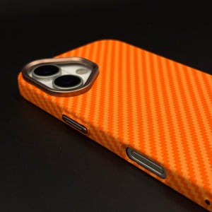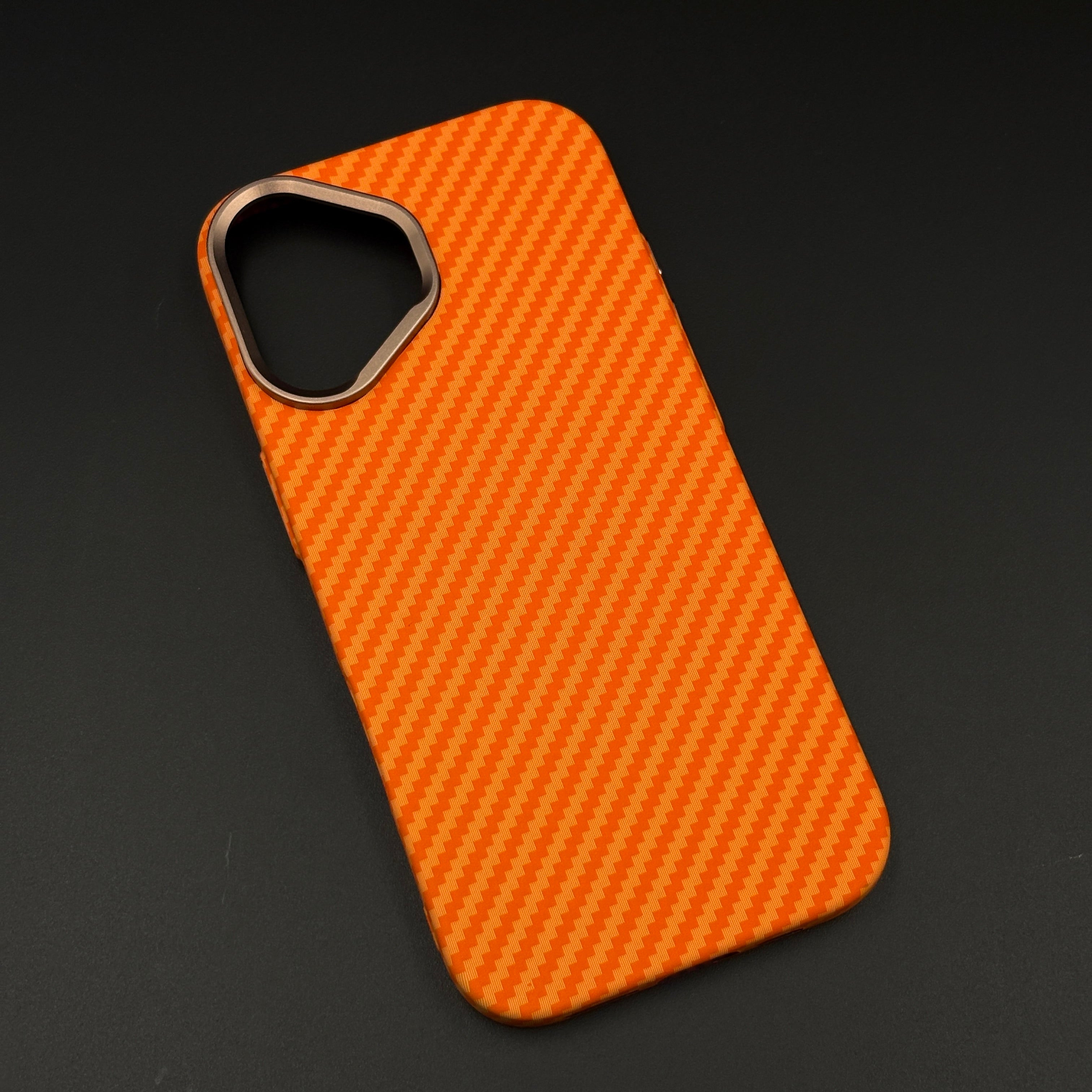 Carbon Fiber Orange Slim Mobile Case Cover for iPhone 17 | Rare Aramid Texture Finish | Real Carbon Fibre Feel | Hidden MagSafe
