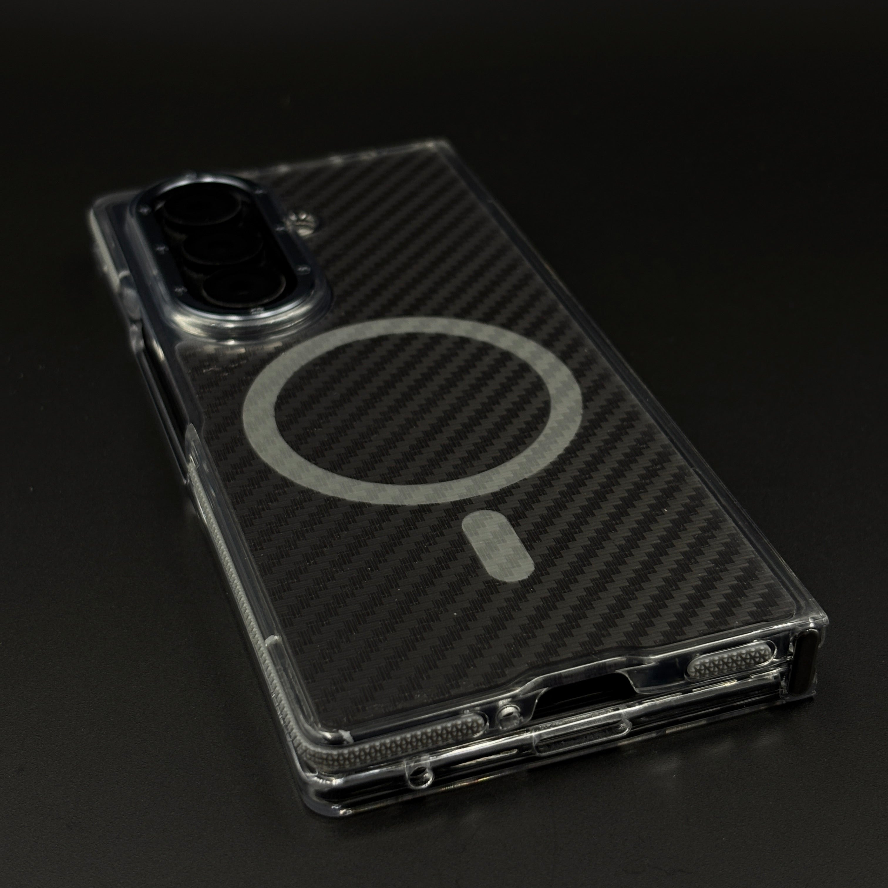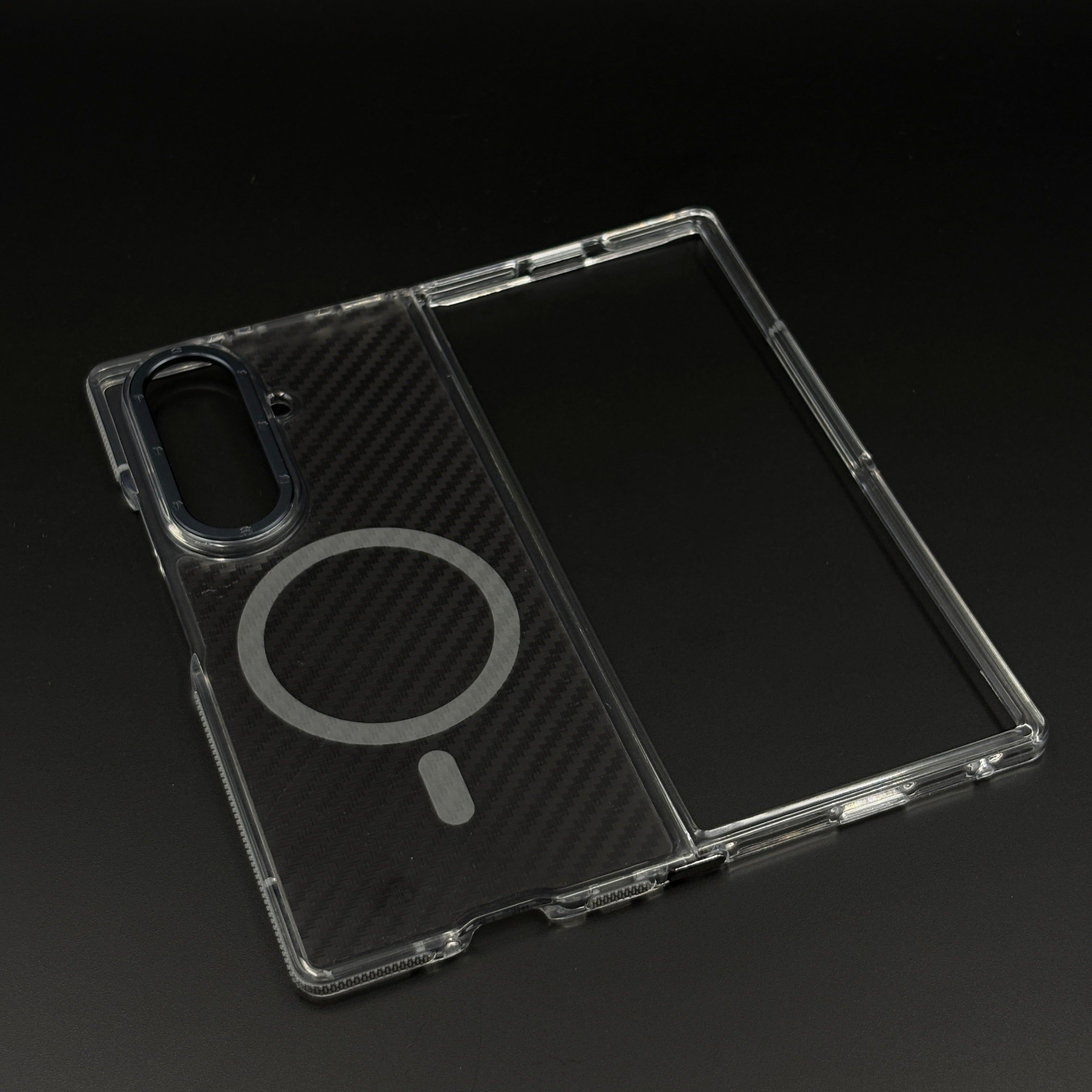 Upgrade your Galaxy Z Fold 7 with this smokey carbon fibre MagSafe case. Featuring a matte finish design, it delivers rugged durability, slim fit style, and MagSafe charging compatibility.