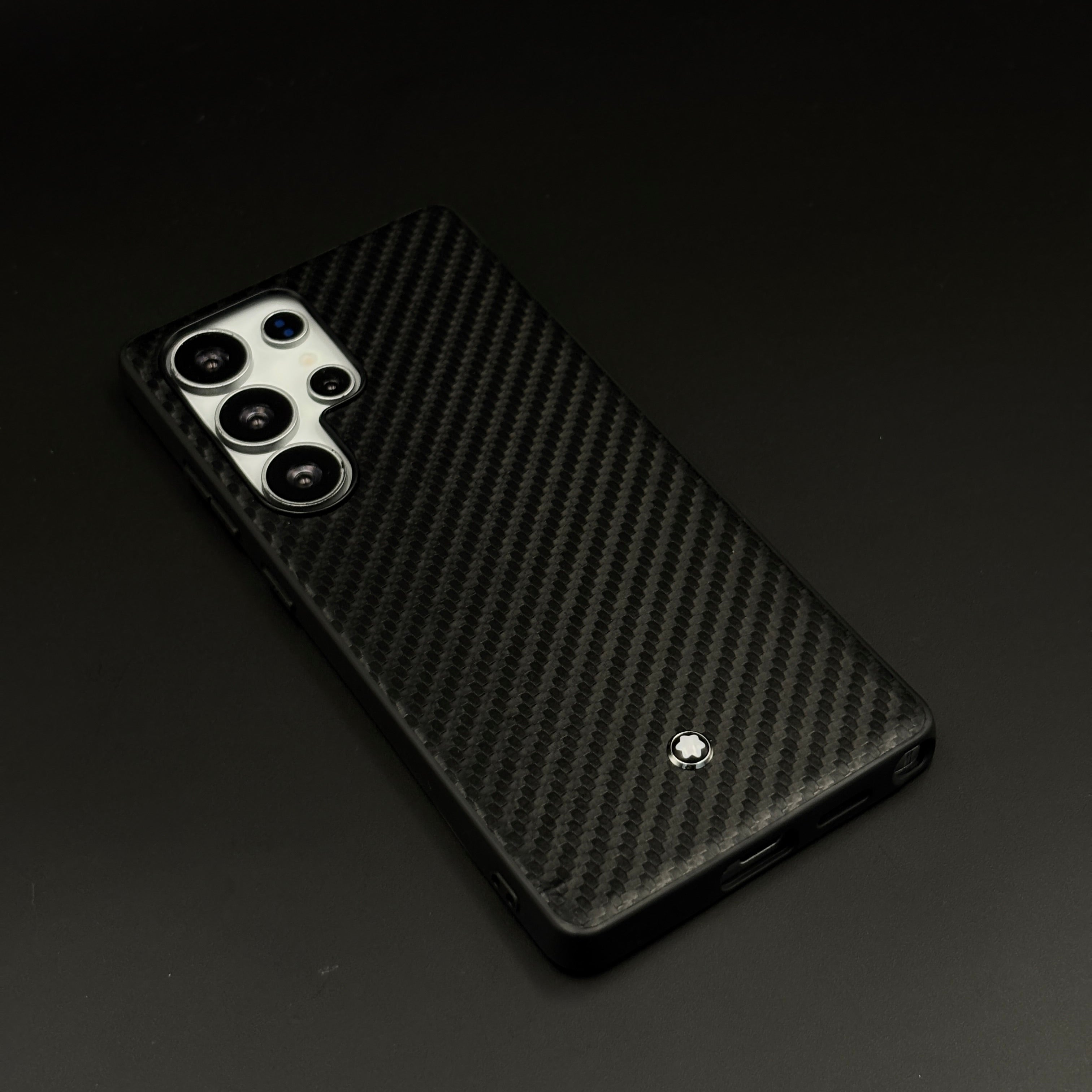 Carbon Fibre MB Logo Case for Samsung Galaxy S25 Ultra | Luxury Embossed Leather Protection