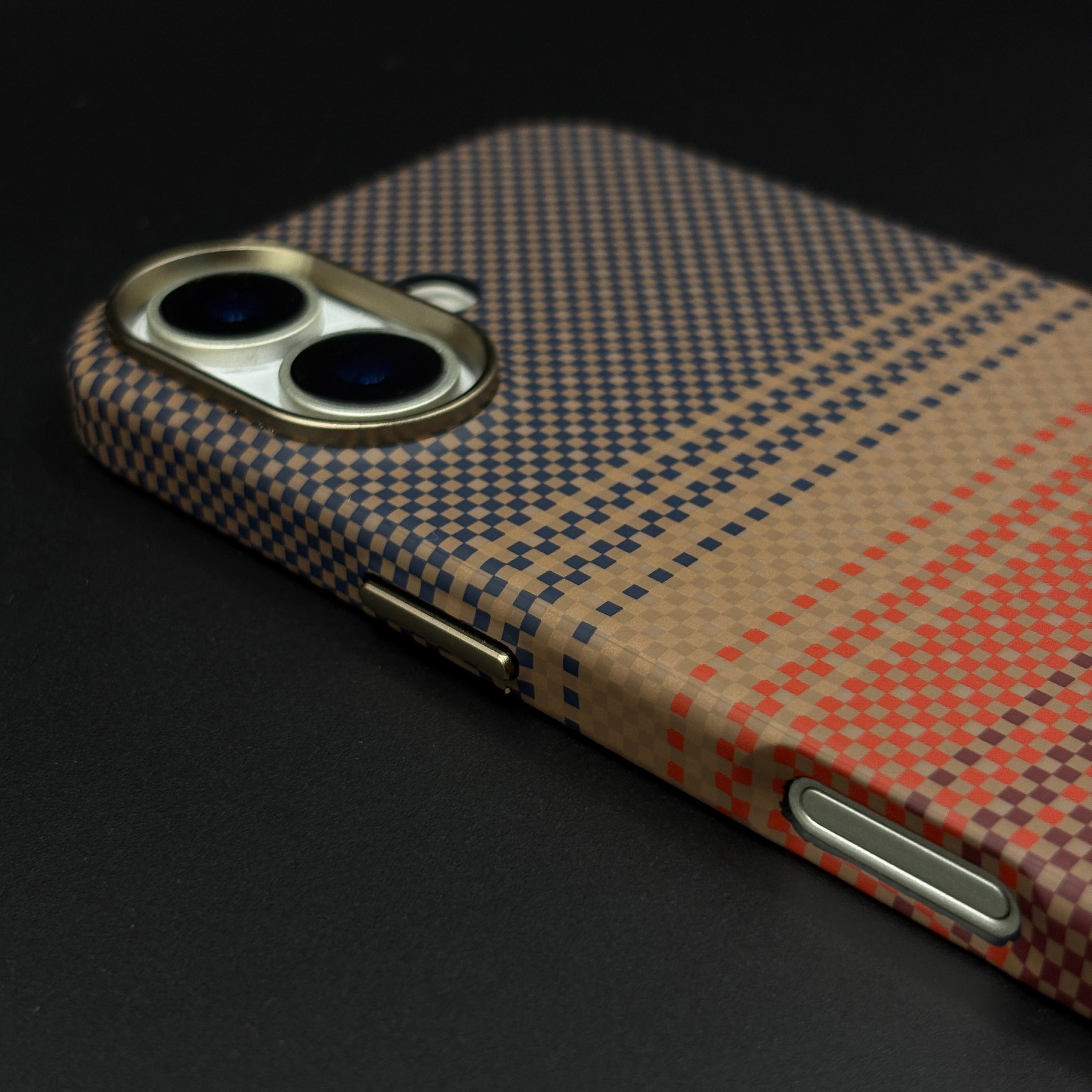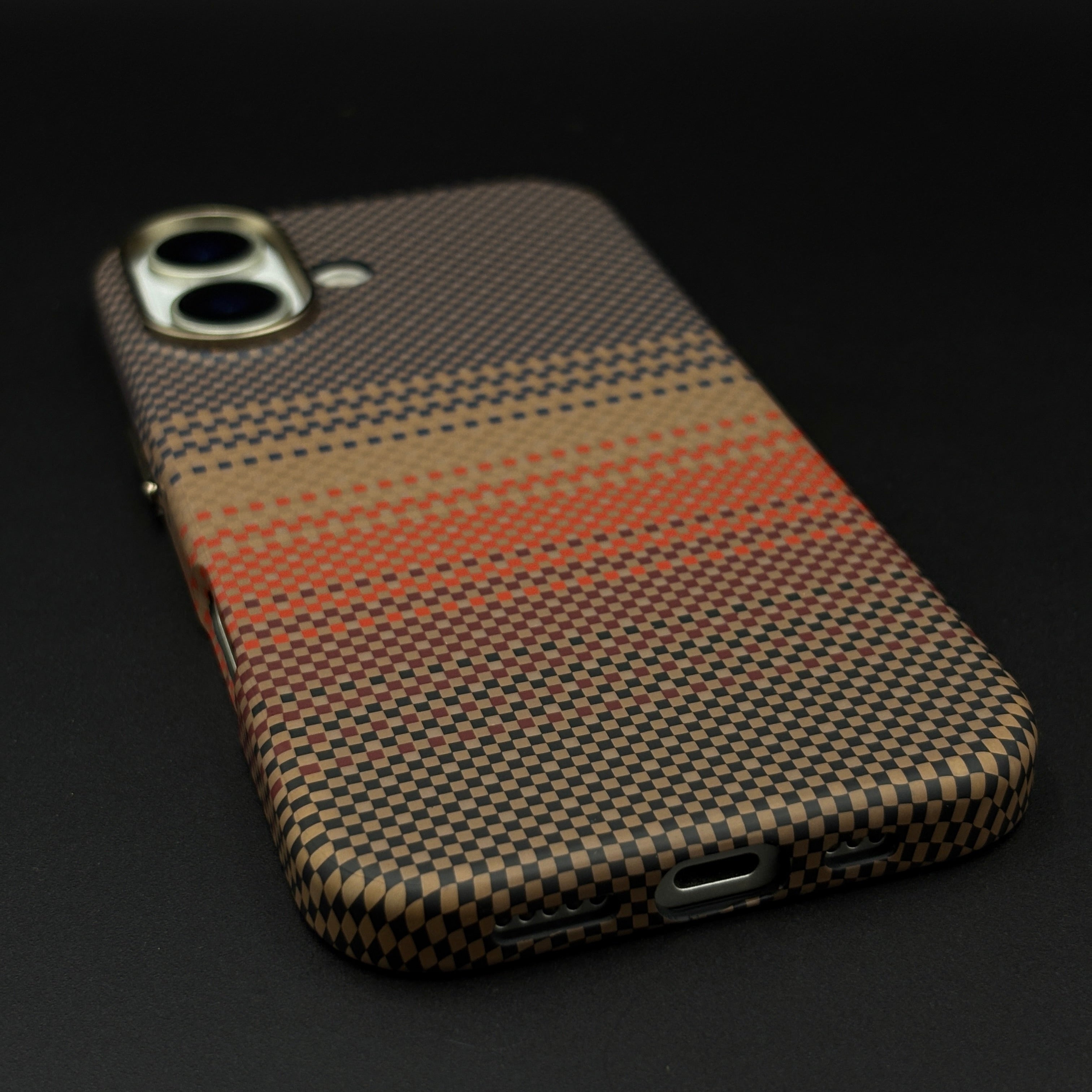 Carbon Texture Sunset Stripe Mobile Case Cover for iPhone 17 | Rare Aramid Texture Finish | Real Carbon Fibre Feel | Hidden MagSafe