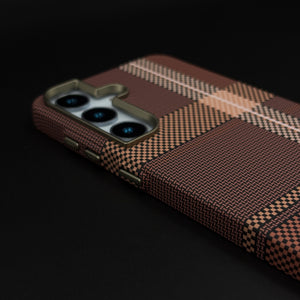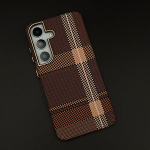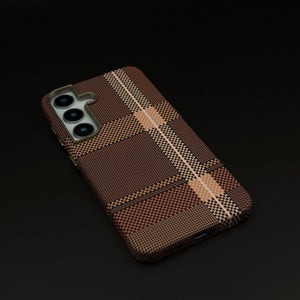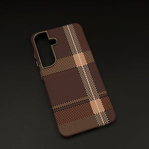 Chestnut Plaid Aramid Phone Case Cover for Galaxy S24 | S25 | Carbon Fibre Texture | Hidden MagSafe