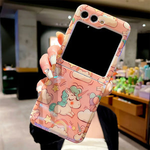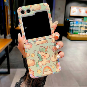 Samsung Galaxy Z Flip 5 Cartoon Rainbow Unicorn Theme Case Cover