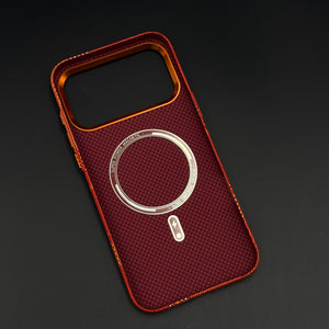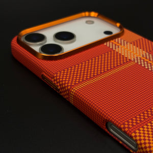 Wrap your iPhone 17 series in this Crimson Tartan Carbon Fibre Hidden MagSafe Case, blending a warm red‑orange tartan pattern with a slim, performance‑inspired carbon texture and built‑in, invisible MagSafe support.