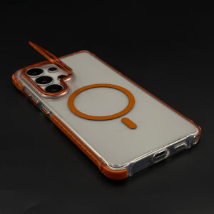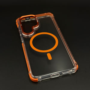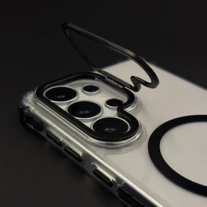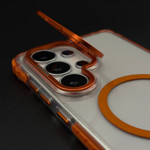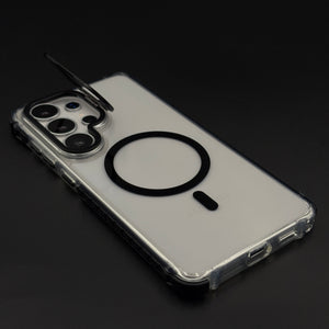 Keep your Samsung Galaxy S26 Ultra fully protected with this crystal clear non-yellowing flip camera lens cover MagSafe mobile case cover — a uniquely functional design featuring a hinged metal lens protector and magnetic charging support, all wrapped in a durable transparent body that stays crystal clear over time.