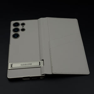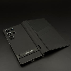 Flip Leather Case with Cardholder Slot & Metal Kickstand for Samsung Galaxy S25 Ultra