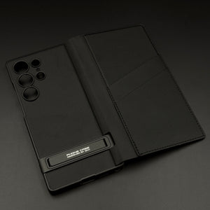Protect your Galaxy S25 Ultra in style with this premium flip leather case featuring cardholder slots and a sturdy metal kickstand. Slim, durable, and multifunctional design.