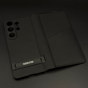Protect your Galaxy S26 Ultra in style with this premium flip leather case featuring cardholder slots and a sturdy metal kickstand. Slim, durable, and multifunctional design.