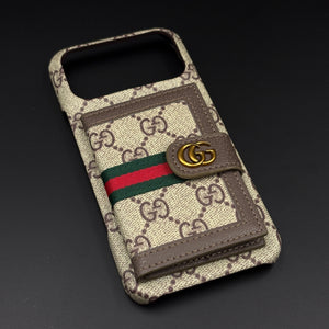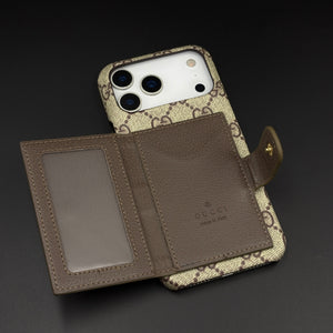 GG Monogram Cardholder Branded Mobile Case Cover for iPhone 17 Series | Slim Wallet | Fine PU Leather