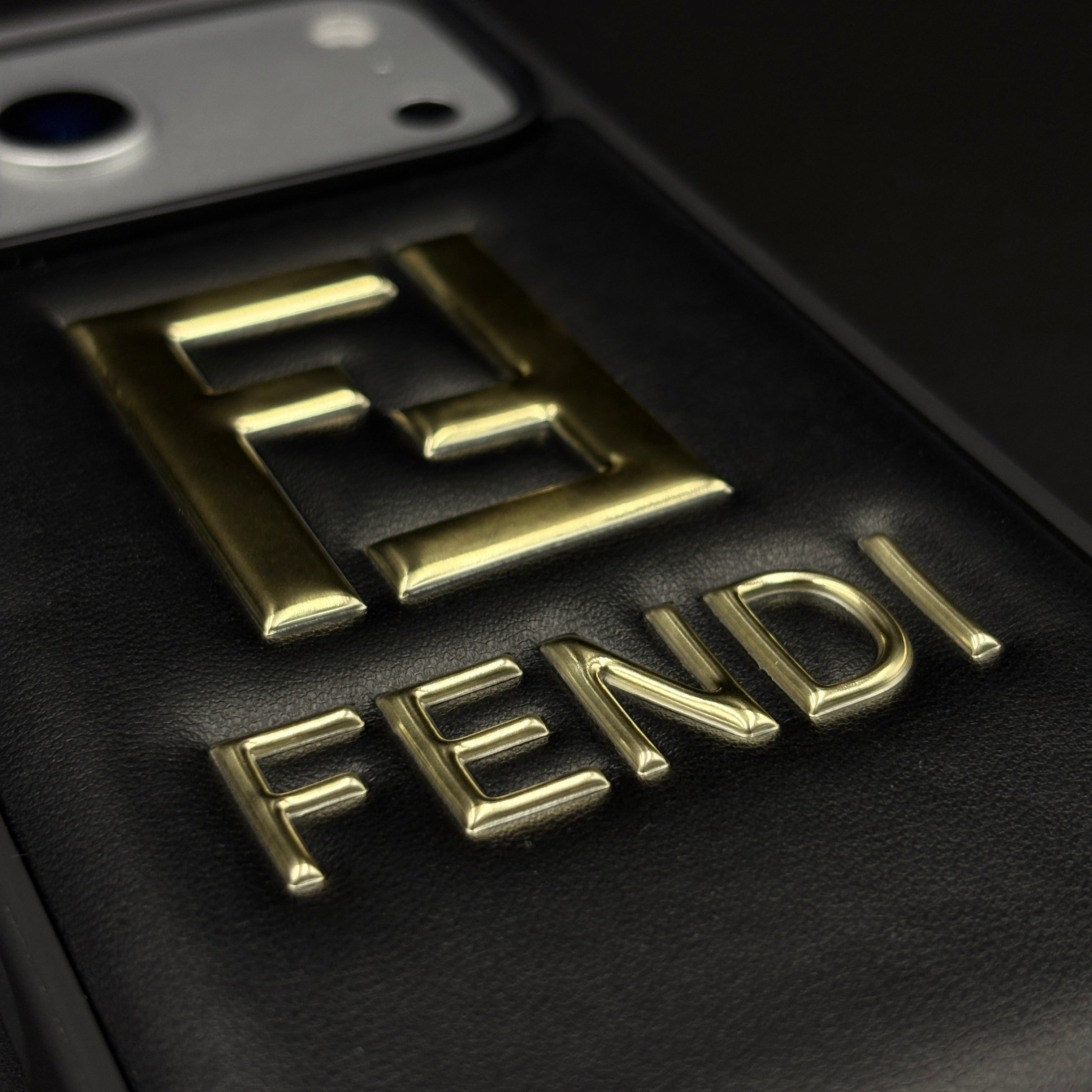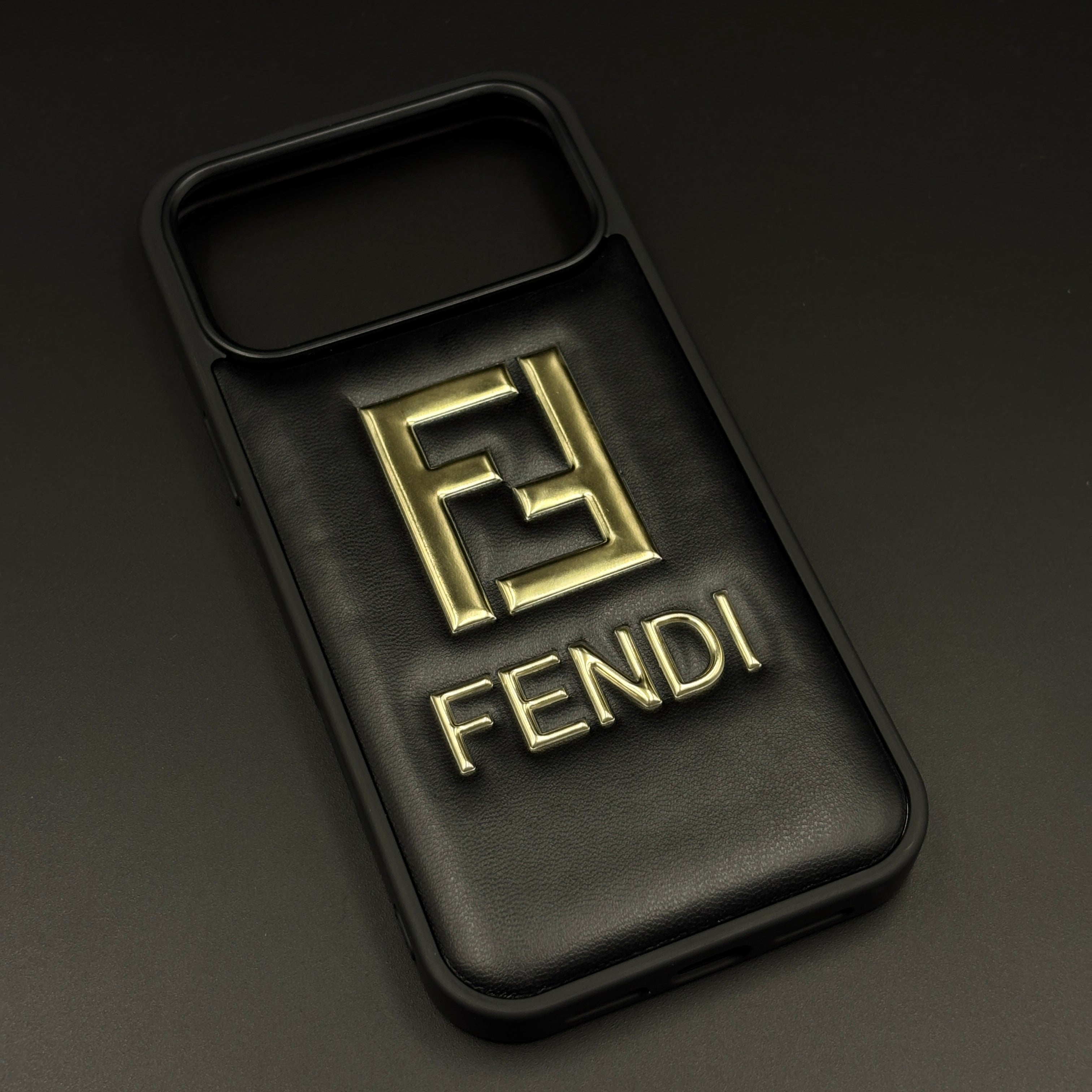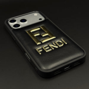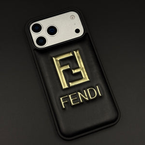 Gold Initial FF Emblem Puffer Mobile Case for iPhone 17 Series | Premium Black Cushion | Embossed Logo