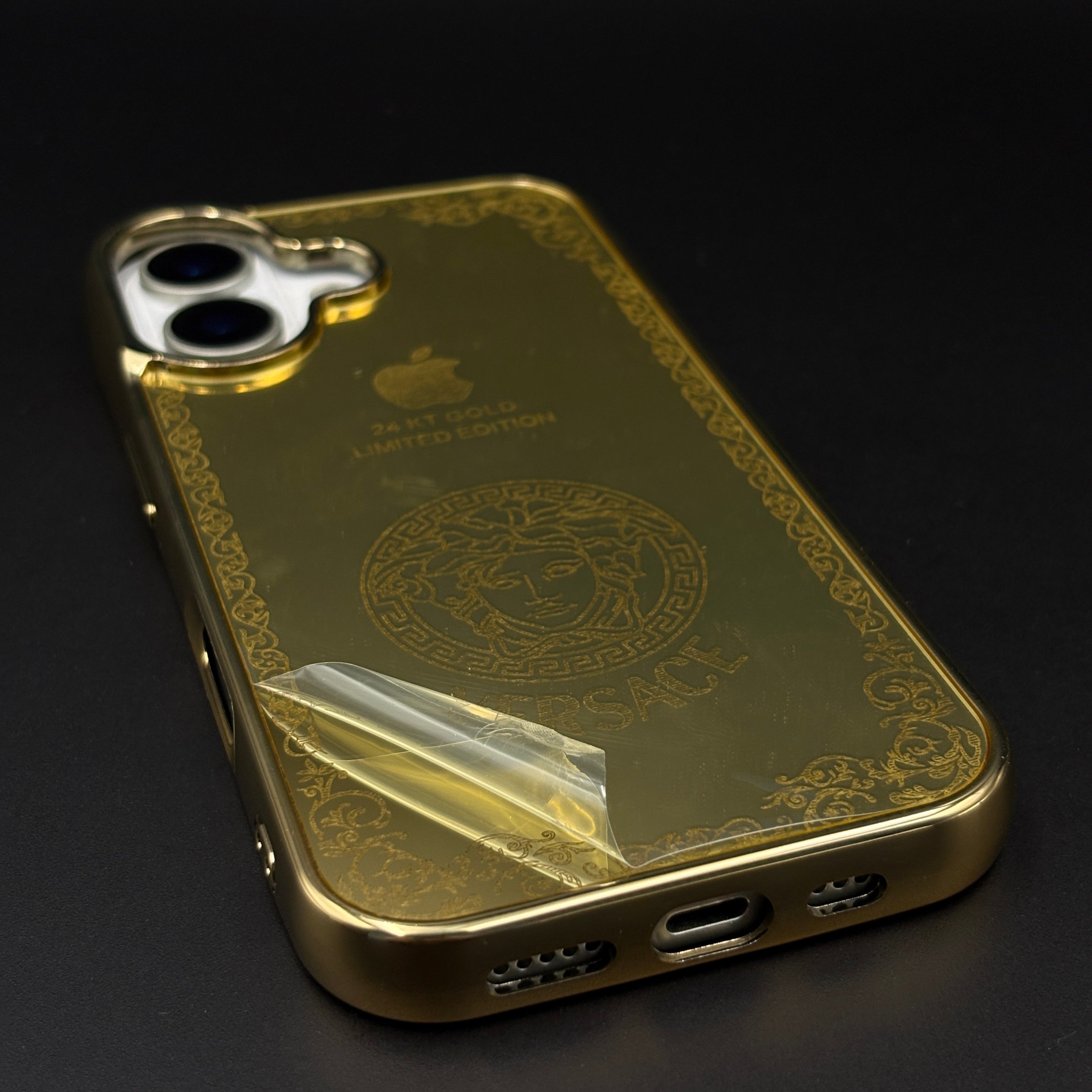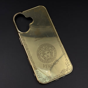 Handcrafted 24K Gold Plated Branded VS Logo Mobile Case Cover for iPhone 17 | Reflective Gold Finish