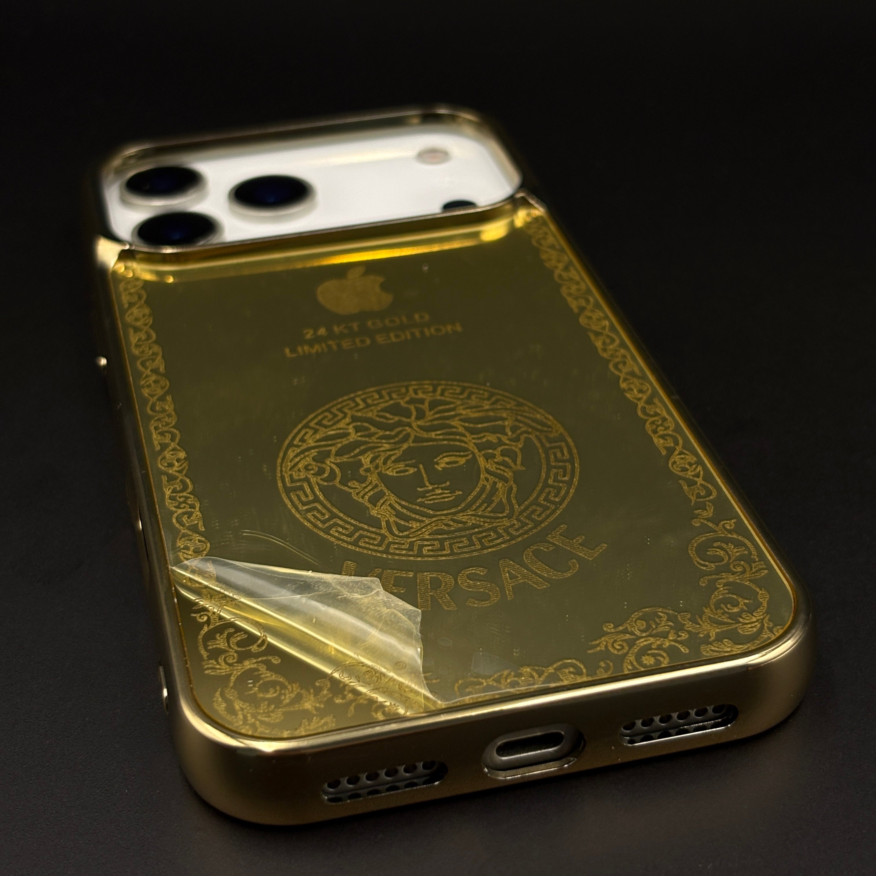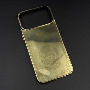 Handcrafted 24K Gold Plated Branded VS Logo Mobile Case Cover for iPhone 17 Series | Reflective Gold Finish