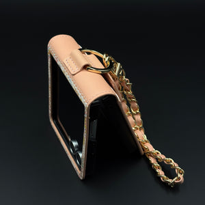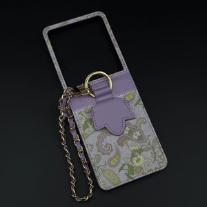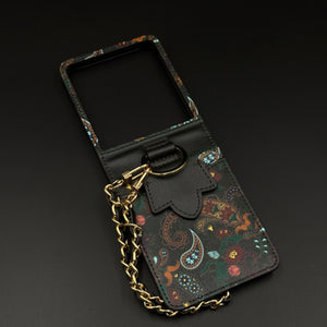 Celebrate the richness of Indian heritage with this beautifully crafted Designer Case for Samsung Galaxy Z Flip 7. Featuring intricate Indian art-inspired paisley patterns, this case brings together traditional aesthetics and modern functionality. Made with premium PU leather and adorned with a detachable gold-accented chain, it’s perfect for those who love bold, ethnic elegance in their everyday essentials. The built-in grip strap adds comfort and practicality for daily use.