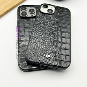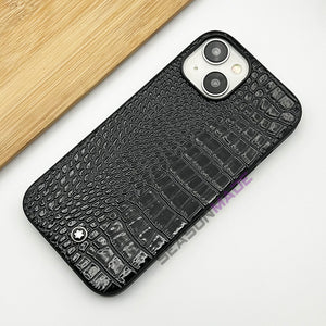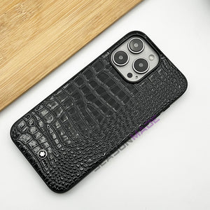 iPhone 15 Series Croc Pattern MB Logo PU Leather Case Cover