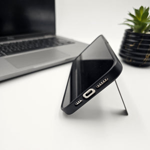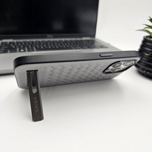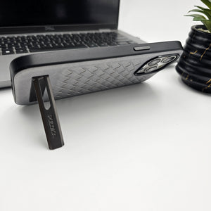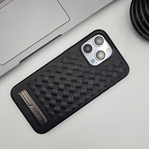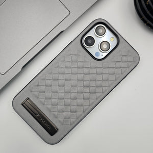 iPhone 15 Series Leather Checks Grid Pattern Kickstand Case