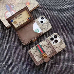 iPhone 15 Series Luxury Brand GG Wallet Case Cover