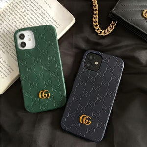 iPhone 15 Series Luxury GG Fashion Leather Brand Case Cover