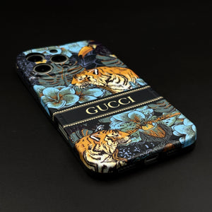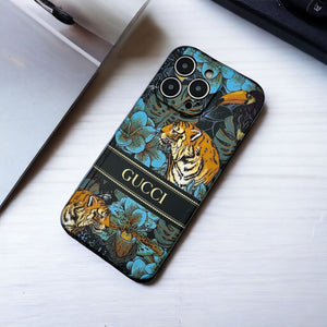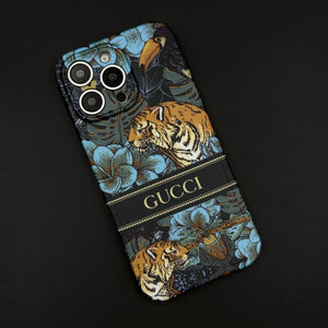 iPhone 15 Series Luxury GG Tiger Design Camera Protection Case Cover