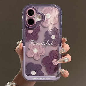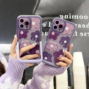 iPhone 16 Series Beautiful Purple Glossy Floral With Kickstand Case Cover