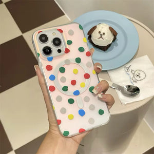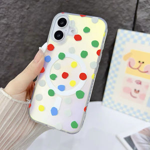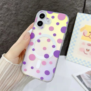 iPhone 16 Series Dotted Pattern Iridescent Translucent Color Changing Magsafe Case