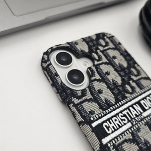 iPhone 16 Series Luxury Brand CD Vertical Belt Stitched Case Cover