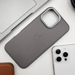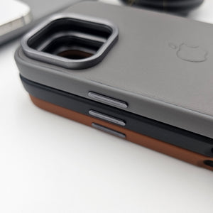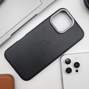 iPhone 16 Series PU Leather Logo Thin Case With Metal Camera Bump