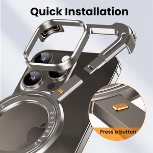 Crafted for bold utility and sleek aesthetics, this iPhone case features a robust Z-frame aluminum structure with a 360° rotating stand and full MagSafe integration.