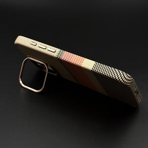 iPhone Aramid Multi-Stripe Case with Camera Kickstand | Carbon Fibre Feel | Hidden MagSafe | Beige Stripe Design